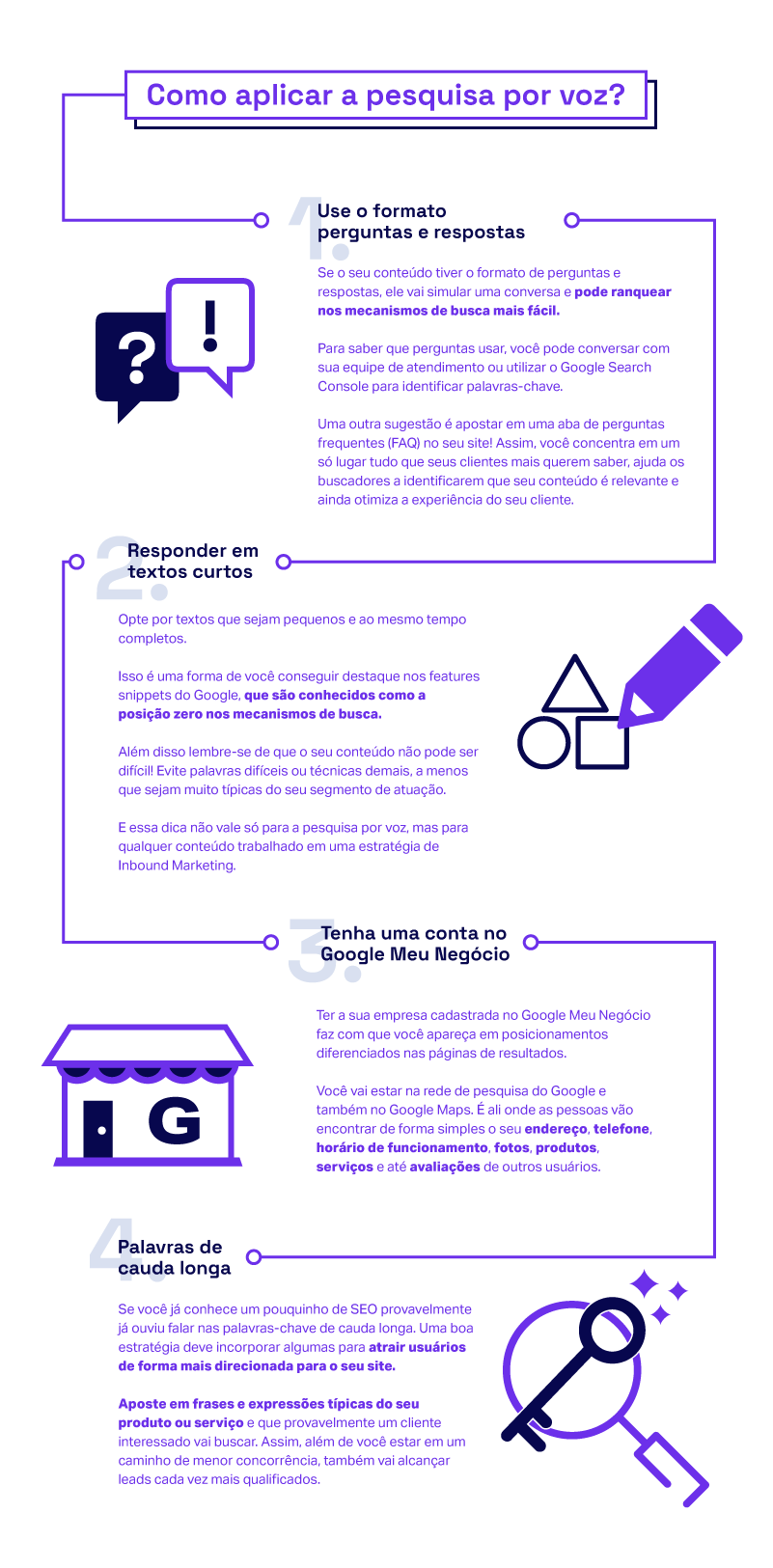 Para ajustar o seu conteúdo às estratégias de SEO para a escrita e também para a voz, você precisa se lembrar de que pesquisa digitada e pesquisa falada tem algumas diferenças, sobretudo no que diz respeito à linguagem.