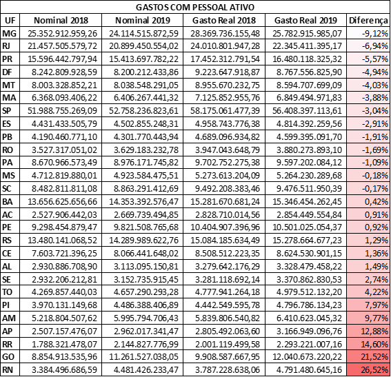 Importante lembrar que esta análise envolveu um ano pré-pandemia e 2020, quando os dados estiverem disponíveis, provavelmente virá com forte expansão de gastos com pessoal ativo devido anecessidade de contratação de profissionais de saúde para enfrentar o caso sanitário que se abateu no Brasil. Aguardemos os dados que deverão estar disponíveis por volta de julho.