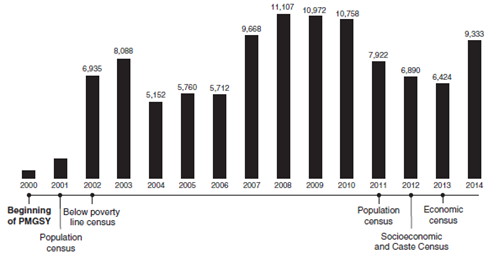 Figura 1: dados da construção de estradas através do PMGSY por ano