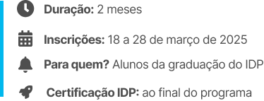 Alunos regularmente matriculados na graduação do IDP, independentemente do semestre, que tenham interesse em desenvolver sua trajetória profissional com o apoio de mentores experientes.