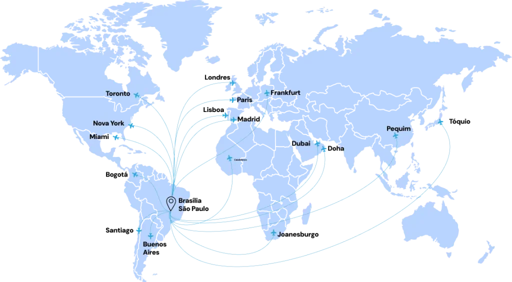 Brasília and São Paulo offer excellent international connections, with direct flights to major destinations across the Americas, Europe, Africa, and Asia. Whether arriving through Brasília International Airport (BSB) or São Paulo’s Guarulhos International Airport (GRU), students can easily access both cities from around the world.