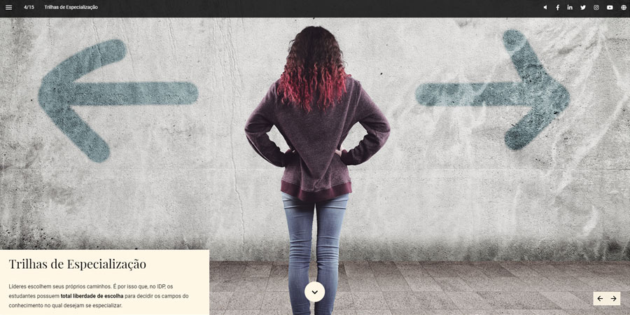Líderes escolhem seus próprios caminhos. É por isso que, no IDP, os estudantes possuem total liberdade de escolha para decidir os campos do conhecimento no qual desejam se especializar.