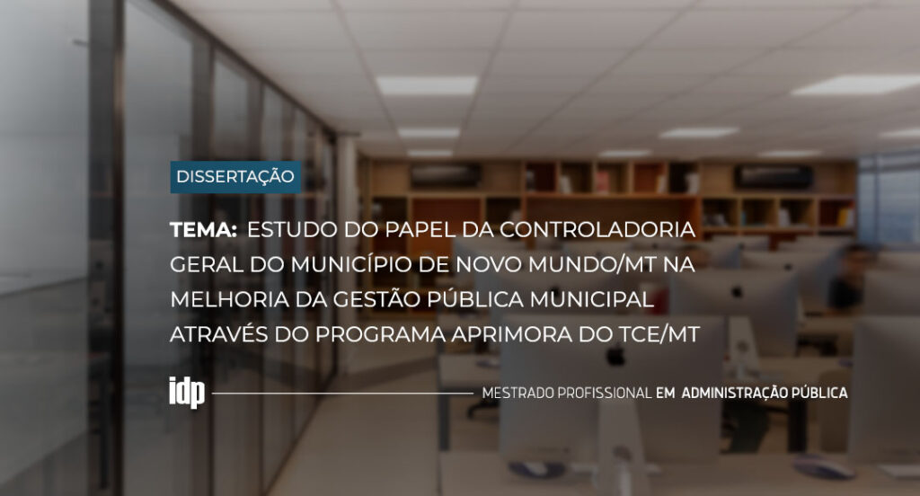 [vc_row][vc_column][vc_column_text]A nossa aluna do Mestrado Profissional em Administração Pública, Alcielly Vitorino de Carli, irá defender sua dissertação no dia 15 de agosto, às 18h. O tema do seu trabalho é: ESTUDO DO PAPEL DA CONTROLADORIA GERAL DO MUNICÍPIO DE NOVO MUNDO/MT NA MELHORIA DA GESTÃO PÚBLICA MUNICIPAL ATRAVÉS DO PROGRAMA APRIMORA DO TCE/MT A banca […]