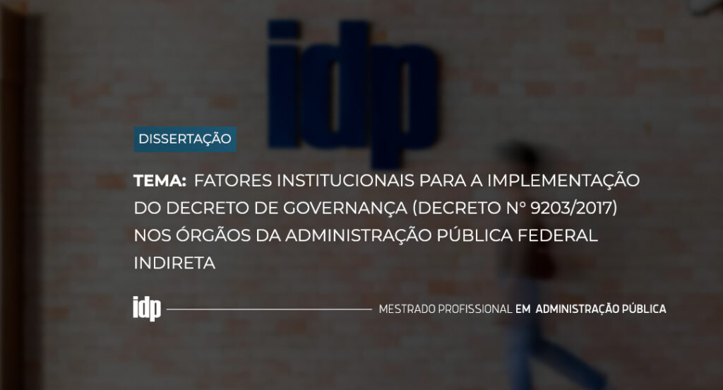 [vc_row][vc_column][vc_column_text]O nosso aluno do Mestrado Profissional em Administração Pública, Cristiano Paulo Soares Pinto, irá defender sua dissertação no dia 29 de junho, às 15h30. O tema do seu trabalho é: Fatores Institucionais para a Implementação do Decreto de Governança (Decreto n° 9203/2017) nos Órgãos da Administração Pública Federal Indireta A banca examinadora é composta pelos […]