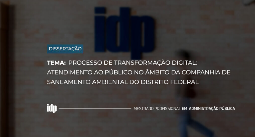 [vc_row][vc_column][vc_column_text]A nossa aluna do Mestrado Profissional em Administração Pública, Ana Paula Pacheco da Silva Souza, irá defender sua dissertação no dia 20 de julho, às 19h. O tema do seu trabalho é: PROCESSO DE TRANSFORMAÇÃO DIGITAL: ATENDIMENTO AO PÚBLICO NO ÂMBITO DA COMPANHIA DE SANEAMENTO AMBIENTAL DO DISTRITO FEDERAL A banca examinadora é composta pelos […]